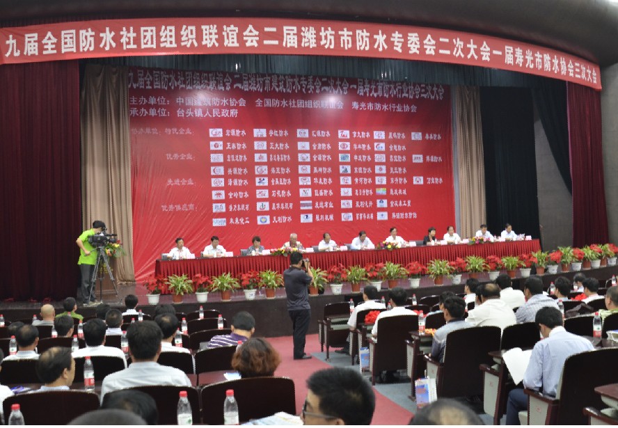 第九届全国防水社团组织联谊会5月19在山东寿光隆重召开。本届联谊会由寿光市防水行业协会担任轮值主席,寿光市政协主席王茂兴、寿光市副市长王文安以及寿光台头镇镇长吴振山、党委书记王爱民到会祝贺。联谊会挂靠单位中国建筑防水协会理事长朱冬青、秘书长苗燕、副秘书长苏明,支持单位中国建筑学会防水专委会秘书长王翠芬,以及20多个全国各省市防水社团组织作为成员单位出席了会议。中国建筑研究总院苏州防水研究院院长羡永彪、《中国建筑防水》杂志社社长徐建月应邀到会,寿光当地100多家防水企业的领导和代表参与了本届联谊活动。