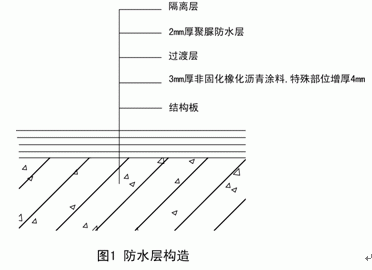 3、非固化橡化沥青涂膜防水层与聚脲防水层之间铺设一道过渡层,