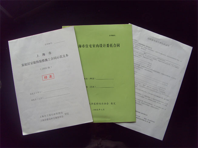 我们使用上海装饰装修行业协会规定的标准设计合同和施工合同,执行行业规范文件。